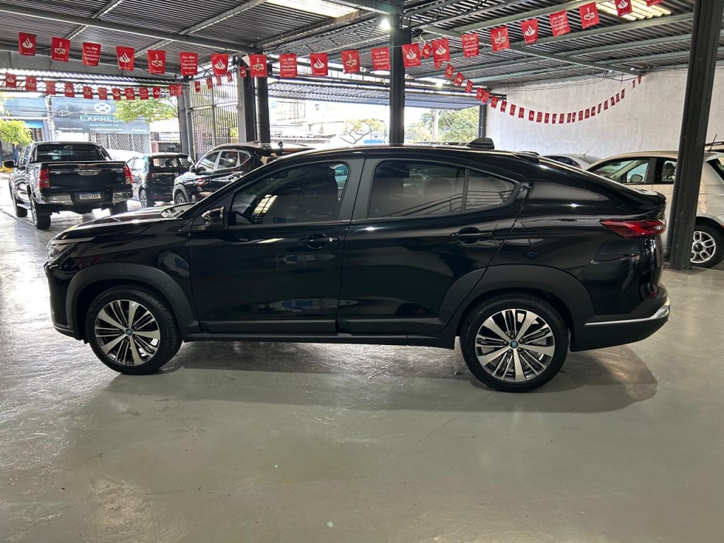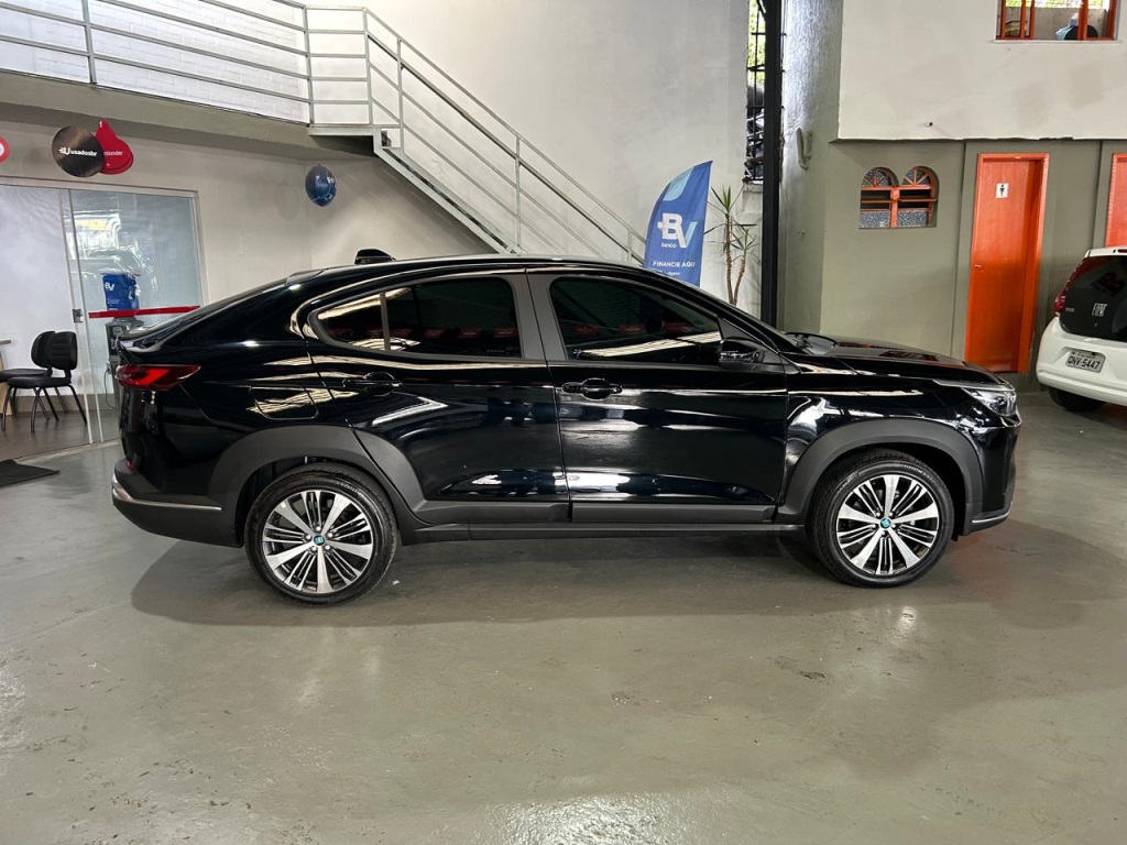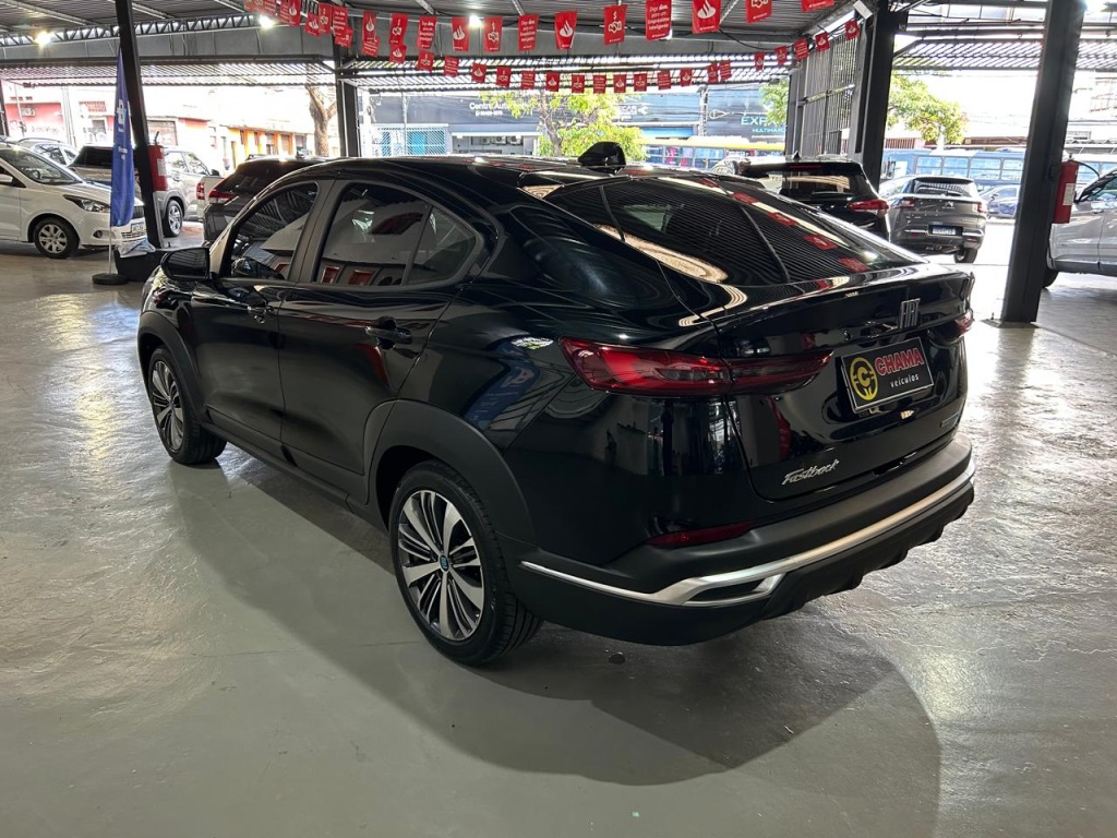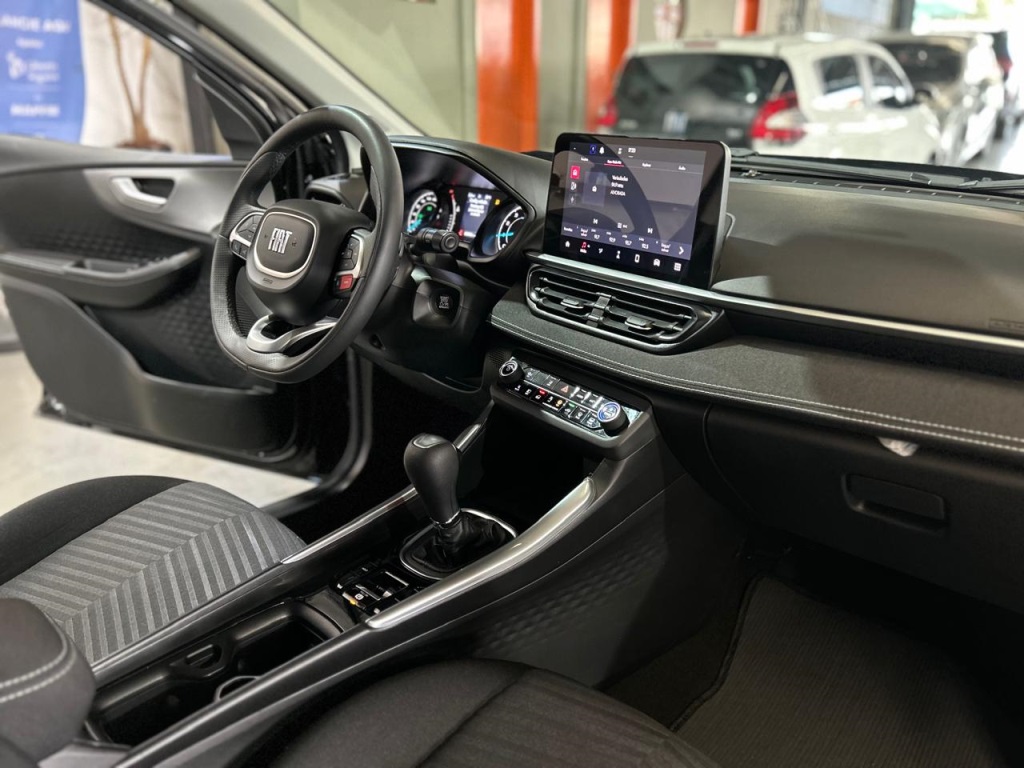 Fiat Fastback Audace Hybrid 2025 3900km. E um SUV cupê com motor 1.0 Turbo 200 Flex Híbrido (T200), entregando até 130 cv (Etanol), câmbio CVT de 7 marchas, e destaque para o pacote ADAS (Frenagem Autônoma de Emergência, Alerta de Saída de Faixa), multimídia de 10,1" com conexão sem fio e itens de conforto como bancos de couro e sensor de estacionamento dianteiro, sendo uma versão de entrada da tecnologia híbrida da Fiat.